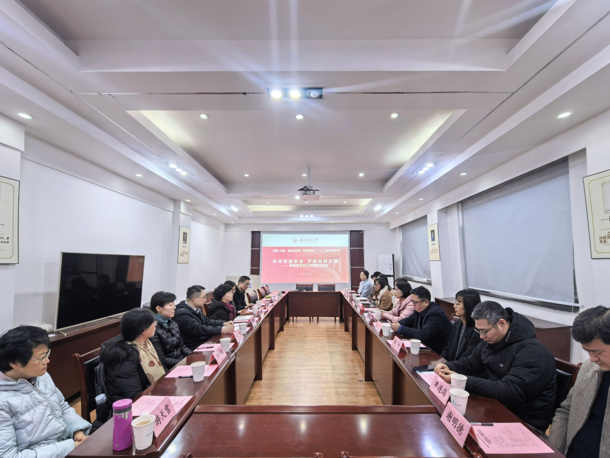 在随后召开的座谈会上,两院与会人员围绕实验室安全文化建设与应急能力提升、师生安全准入教育与常态化培训的创新实践、可持续建设与安全责任体系落实、报废设备与废液废渣处理、实验室及设备共享机制建立等主题进行了深入研讨。